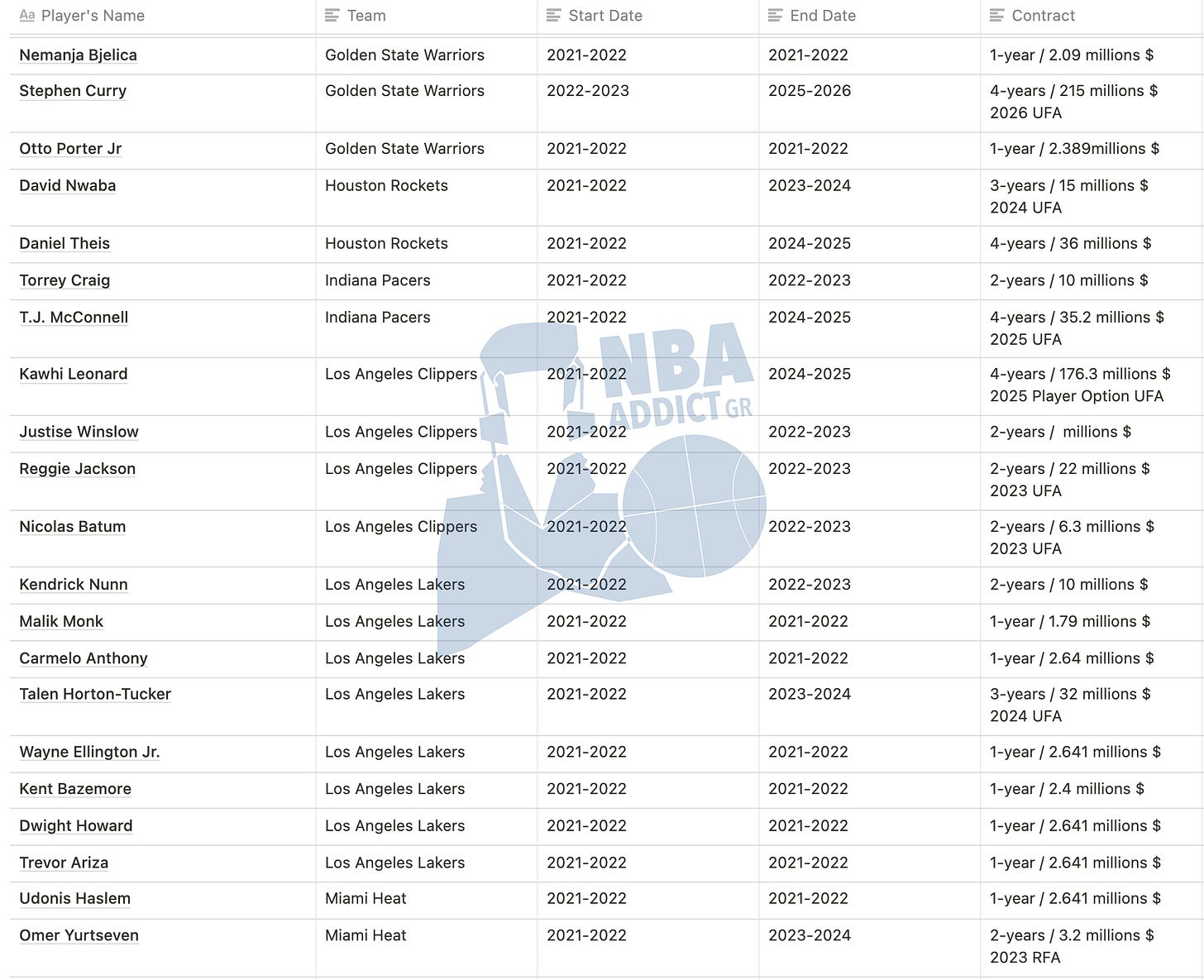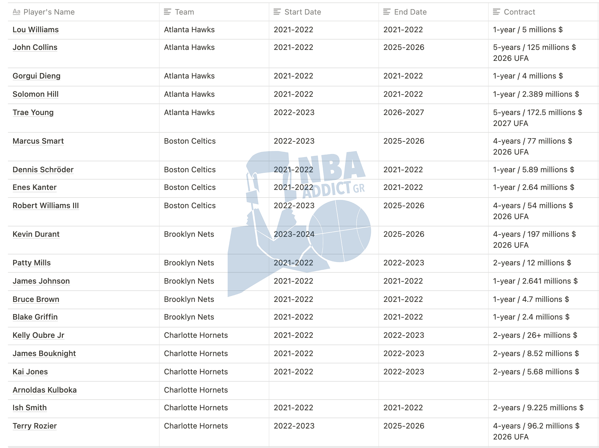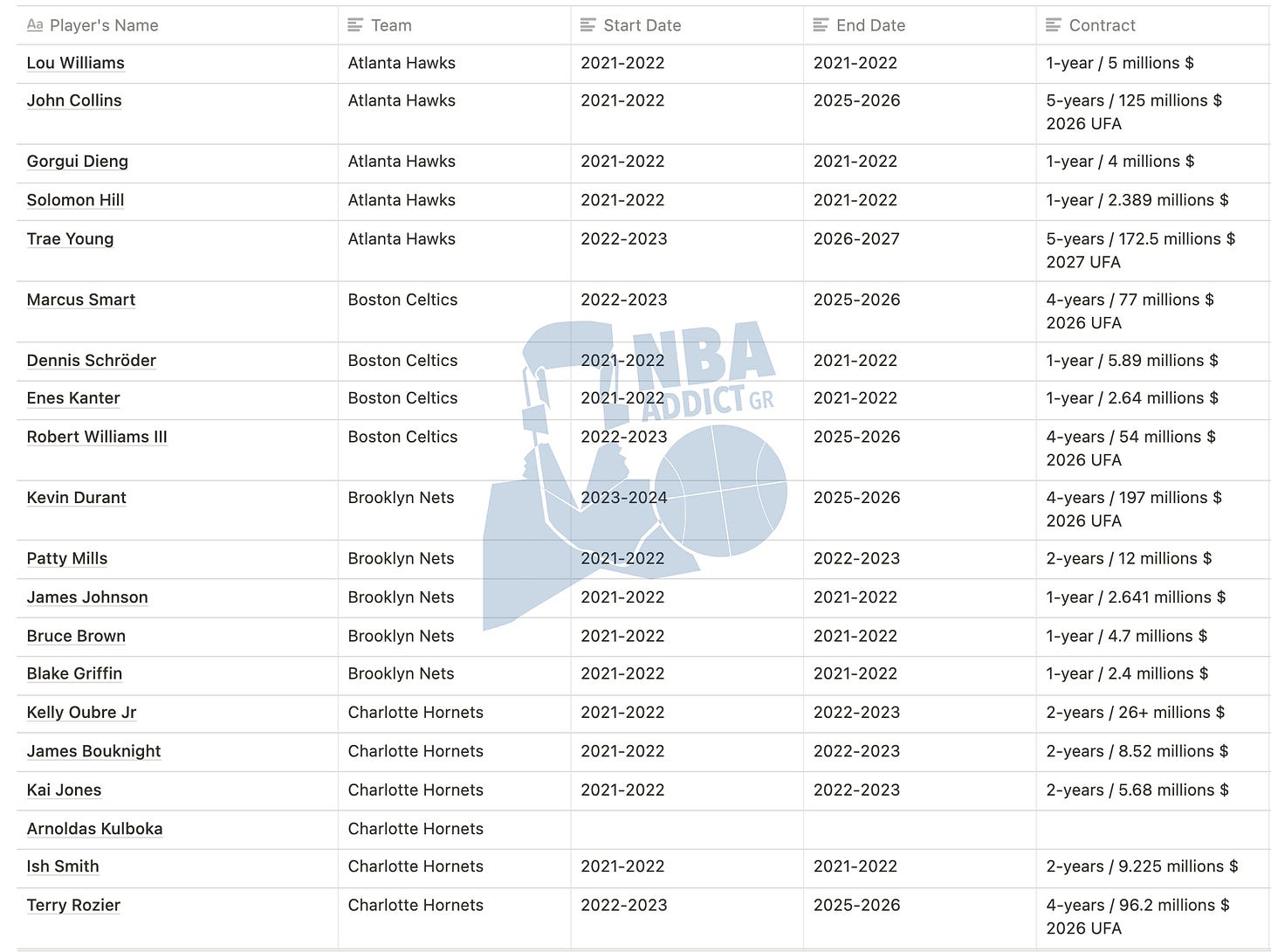 Η καλοκαιρινή ραστώνη σιγά σιγά οδεύει στο τέλος της!!!! Γέμισα μπαταρίες και σιγά σιγά θα επανέλθω σε πλήρεις ρυθμούς, μέχρι τότε όμως σας έφτιαξα μία λίστα με όλες τις κινήσεις που έγιναν κατά τη διάρκεια της Off-Season, έτσι ώστε να μη σας ξεφύγει τίποτα!!! Η λίστα είναι ταξινομημένη ανά ομάδα κι περιέχει όλα τα extensions παικτών αλλά και τις υπογραφές των Free Agents!!! Στις 2 τελευταίες εικόνες υπάρχουν κι όλα τα Trades που έλαβαν χώρα αυτήν την περίοδο!!! Enjoy it και μη ξεχάσετε να κάνετε Subscribe έτσι ώστε να λαμβάνετε κάθε νέο μου άρθρο στο E-mail σας!!!