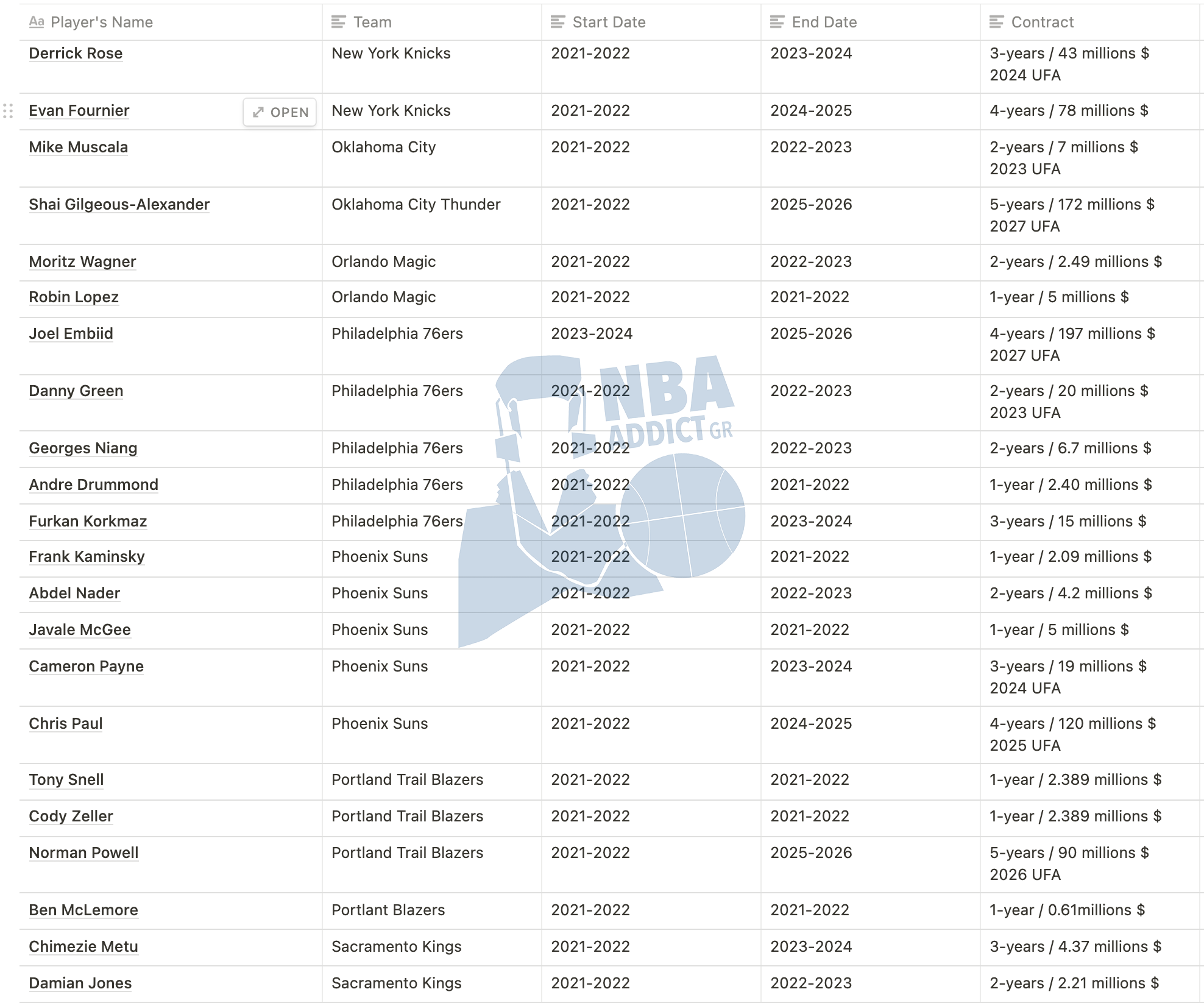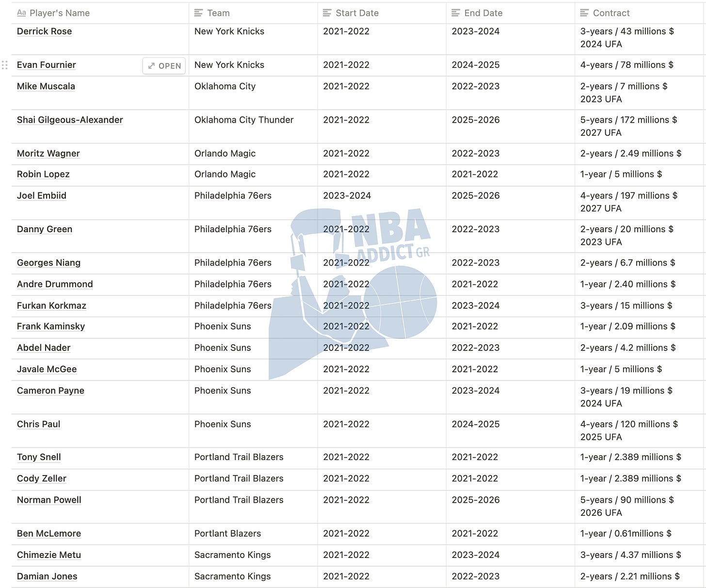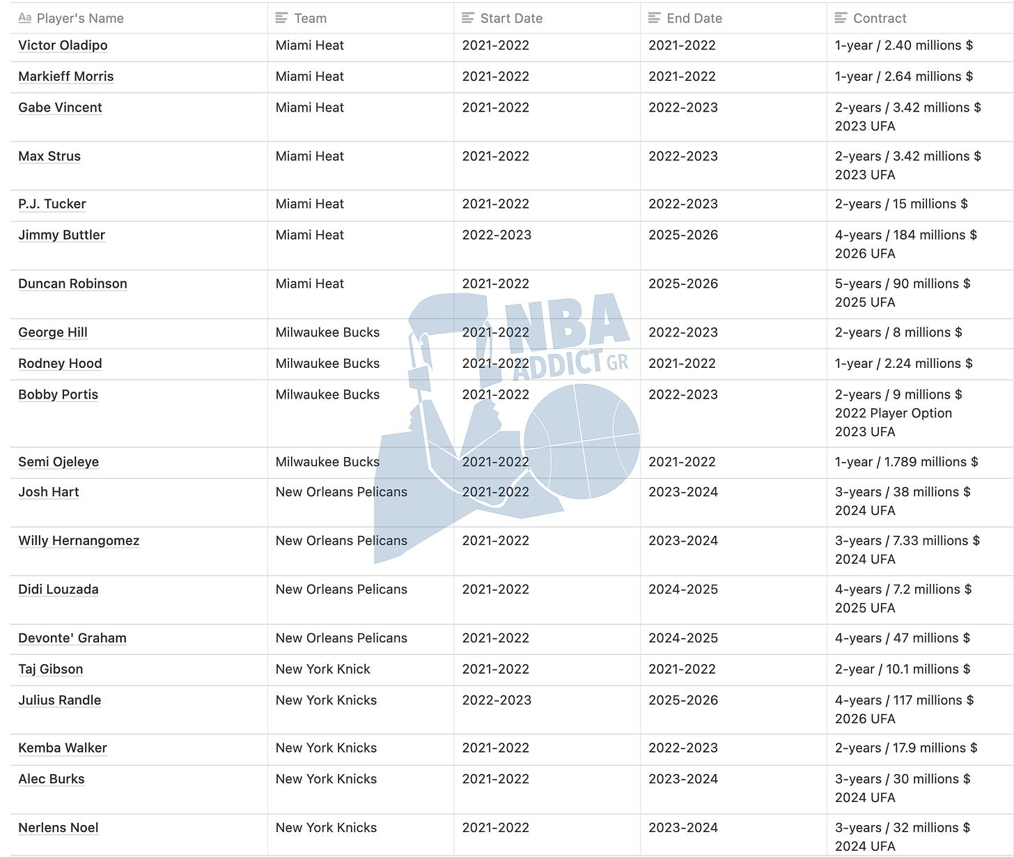 Η καλοκαιρινή ραστώνη σιγά σιγά οδεύει στο τέλος της!!!! Γέμισα μπαταρίες και σιγά σιγά θα επανέλθω σε πλήρεις ρυθμούς, μέχρι τότε όμως σας έφτιαξα μία λίστα με όλες τις κινήσεις που έγιναν κατά τη διάρκεια της Off-Season, έτσι ώστε να μη σας ξεφύγει τίποτα!!! Η λίστα είναι ταξινομημένη ανά ομάδα κι περιέχει όλα τα extensions παικτών αλλά και τις υπογραφές των Free Agents!!! Στις 2 τελευταίες εικόνες υπάρχουν κι όλα τα Trades που έλαβαν χώρα αυτήν την περίοδο!!! Enjoy it και μη ξεχάσετε να κάνετε Subscribe έτσι ώστε να λαμβάνετε κάθε νέο μου άρθρο στο E-mail σας!!!